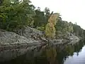The tall buildings of Handen commercial centre along the eastern shore of the lake contrast the dense forest of the Rudan Open-air Area on the opposite shore. The proximity to the commuter rail station at Handen, makes the lake easily accessible to a large number of people, while the forests surrounding it makes it attractive to open-air lovers. It is used for bathing in summers and cross-country skiing in winters.[4]