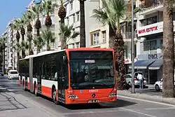 The ease of access to the town makes the administration of several shuttle buses and share taxis by the province and from central İzmir to Özdere and its beaches possible. Dolmuş and coach buses also operate from the İzmir bus station and from other nearby towns such as Kuşadası and Seferihisar. The town can be reached from the İzmir Adnan Menderes International Airport, where rental car services and taxis can be used to the reach the town center, its neighborhoods, and nearby areas.[10][8] Ferry and yacht services can be found at several harbors within and near town.[5][8]