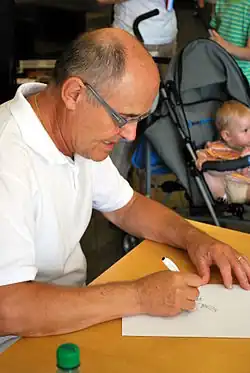 Author Jaroslav Němeček draws character Pinďa | |