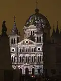 The turn of the 20th century coincided with cultural and technological progress; in 1899, the first stationary cinema in Poland (Gabinet Iluzji) was opened in Łódź.[44] In the same year, Józef Piłsudski, the future Marshal of Poland, settled in the city and began printing the Robotnik (The Worker; p. 1894–1939), an underground newspaper published by the Polish Socialist Party.[45] During the June Days (1905), approximately 100,000 unemployed labourers went on a mass strike, barricaded the streets and clashed with troops.[46] Officially, 151 demonstrators were killed and thousands were wounded.[47] In 1912, the Archcathedral of St. Stanislaus Kostka was completed and its tower at 104 metres (341 ft) is one of the tallest in Poland.[48][49]