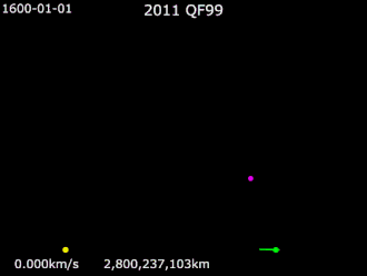 |  Animation of 2011 QF99 relative to Sun and Uranus 1600-2500 2011 QF99 · Uranus · Sun | |