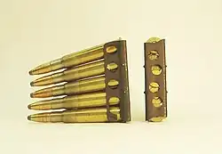 It was first manufactured in Britain as a stop-gap black powder round put into service in December 1888 for the Lee–Metford rifle. From 1891 the cartridge used smokeless powder which had been the intention from the outset, but the decision on which smokeless powder to adopt had been delayed.[4] It was the standard British and Commonwealth military cartridge for rifles and machine guns from 1889 until it was replaced by the 7.62×51mm NATO[2] in the 1950s.