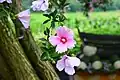 Rose of Sharon (Hibiscus syriacus) is the national flower of the Republic of Korea (South Korea) and has historical implications in the term Geunyeok (근역, 槿域).