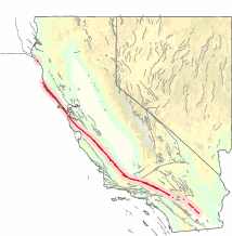 The San Andreas is the "master fault" of California: it is the main plate boundary in the San Andreas Fault System, which includes several other major active faults. This zone of interaction between the Pacific and North American plates has resulted in hundreds of faults crisscrossing California. There are several strike-slip, reverse, and thrust faults hidden under the Santa Barbara Channel that could produce devastating earthquakes and tsunamis, including a thrust fault that runs along the base of the Santa Monica Mountains.[5] These faults are a result of the "Big Bend" in the San Andreas Fault where it meets with the Garlock Fault, exerting compression in the crust, forcing thrust and reverse faults to push crustal blocks upwards.