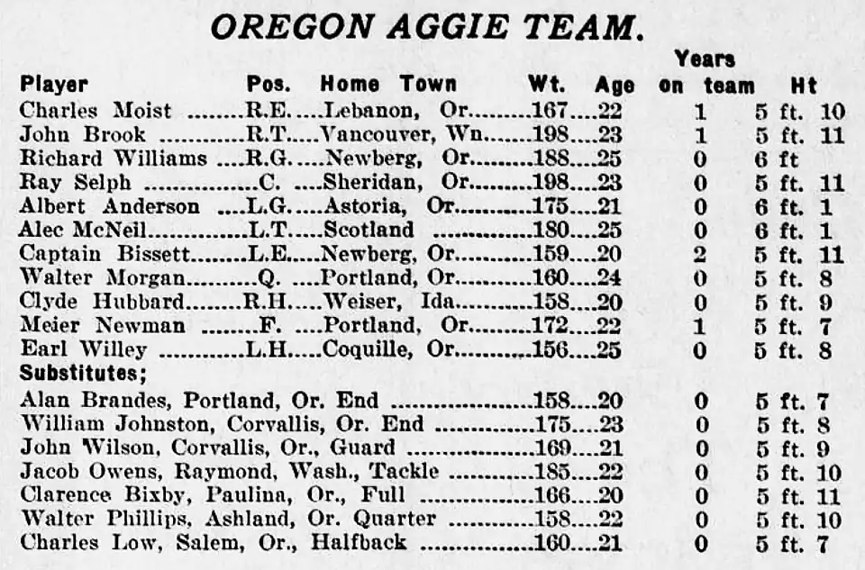 ^ "OAC crushes Idaho eleven" . Spokesman-Review . (Spokane, Washington). October 8, 1916. p. 1, part 3.