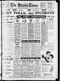 - ^ a b c d e "1955 Legislative Assembly General Election". Singapore Infopedia. National Library Board. Retrieved 28 May 2025.