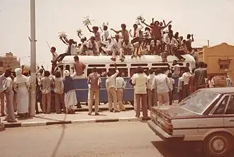 ![]() Sudanese celebrating the overthrow of Numeri on the streets of Khartoum on 6th April 1985. | |||||||