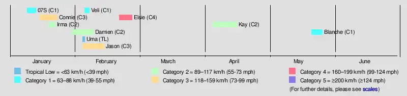 Damien 30 January – 9 February Category 2 tropical cyclone 95 km/h (60 mph) 980 hPa (28.94 inHg) Western Australia