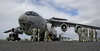 Indian Air Force Ilyushin Il-76 planes like this one were used in Cactus. (This image was taken at an unrelated location in Hawaii, United States decades after 1988.) | |||||||