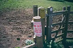 A government notice on the 2001 UK foot and mouth disease outbreak. King's Sutton is in Northamptonshire, south of Banbury.