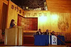 On October 17 two debates were held on the same night, one hosted by Air America and one hosted by the Beth El synagogue. All four major candidates on the ballot were invited to the Air America debate, though Fine did not attend.[67] Pond was not invited to the Beth El debate, though he did attend it as a member of the audience, and upon seeing him Ellison and Lee escorted him onto the stage in order for him to participate. However, the debate officials refused to allow him to do so, and Pond returned to his seat.[56] In an analysis of the Beth El debate, journalist and blogger David Zingler stated that Fine was the "least impressive" debater, finding that he was answering questions with "rambling dissertations that border on incoherent".[56]