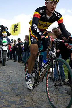 Stijn Devolder won the Belgian National Road Race Championships and wore the Belgian champion jersey the following year