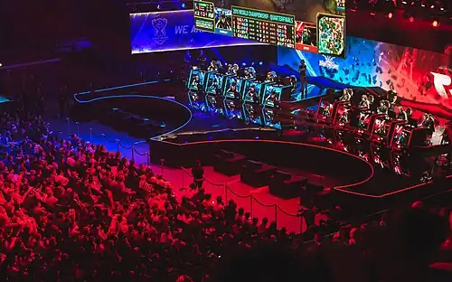 The 2015 League of Legends World Championship was an esports tournament for the multiplayer online battle arena video game League of Legends. It was the fifth iteration of the League of Legends World Championship, an annual international tournament organized by the game's developer, Riot Games. It was held from October 1 to 31 in various cities across Europe: the group stages in Le Dock Pullman, in Paris, France; the quarterfinals at the Wembley Arena in London, England, United Kingdom; the semifinals in the Brussels Expo in Brussels, Belgium; and the finals at Mercedes-Benz Arena in Berlin, Germany. The 16 teams qualified by either winning a professional league or a regional qualifying tournament.[2] There was a 16 team round-robin group stage followed by an 8 team single elimination bracket. The games were officially streamed on Twitch, YouTube and Azubu in several languages. The BBC also streamed the tournament online on BBC Three but for British IP addresses only. A peak of around 14 million concurrent viewers watched the finals, according to official sources.