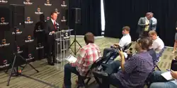 Coach Hudspeth addresses the media at the 2015 Sun Belt Media Day before the season.