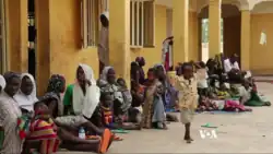 Freed captives had been subjected to forced labor, as well as sexual and physical abuse.[24] Some were forced to fight alongside Boko Haram rebels or were used as human shields.[24][45] According to initial reports, some of the captives were traumatized to the point where they fired upon their rescuers, believing the militants were "good people who had treated them well".[45] Others painted a different picture, saying their captors kept them indoors, brought out only when needed to retrieve food. They were severely beaten and given only minimal food – rescued children were described as visibly malnourished by the press.[44] Other children had forgotten their own names. Amnesty International African director Netsanet Belay remarked "The trauma suffered by the women and girls is truly horrific."[45] An aid worker described the captives as "not in great condition ...All of them are traumatized. They're hungry. They're sick."[46] Of the first 275 captives, only 61 were over the age of 18; 214 were visibly pregnant.[44][46] None of them knew the location of the Chibok girls, but said militants who visited their camp had claimed the girls were sold or forced into polygamous marriages with militants.[44]