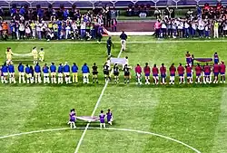 Mariona Caldentey became the first female footballer to be awarded Catalunya Ràdio's Trofeu Kubala for the best goal of the previous season, for her long-range goal against FC Rosengård in the previous season's Champions League, which was announced on 8 July.[24] Caldentey then joined many of her teammates at the 2023 FIFA Women's World Cup, which began on 20 July; Barcelona was the most-represented club at the tournament, with 18 players for eight national teams: including new signing Batlle and Giulia Dragoni of the B team, they counted 9 for Spain, 2 each for England and Norway, and 1 each for Brazil, Italy, Nigeria, Sweden and Switzerland.[25]