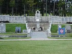 The 28th Division headquarters arrived at the Port of Philadelphia, Pennsylvania, aboard the USS Kroonland on 30 April 1919 after twelve months of overseas service and was demobilized on 17 May 1919 at Camp Dix, New Jersey. In accordance with the National Defense Act of 1920, the division was allotted to the state of Pennsylvania and assigned to the III Corps in 1921. The division headquarters was reorganized and federally recognized on 22 December 1921 at Philadelphia. The headquarters was relocated on 12 March 1933 to Harrisburg, Pennsylvania. The designated mobilization training center for the “Keystone” Division was Camp Bullis, Texas. An honor battalion of Pennsylvania National Guardsmen of the "Iron Division" dedicated the Pennsylvania World War Memorial in Varennes-en-Argonne, France, in 1928.[21] The division, less the 53rd Field Artillery Brigade, conducted summer camp most years at Mount Gretna, Pennsylvania, 1922–34, and at Indiantown Gap Military Reservation, Pennsylvania, 1935–39. The 53rd Field Artillery Brigade conducted its training most years at Tobyhanna, Pennsylvania, so that its subordinate batteries could conduct live-fire training at the ranges located there. Generally, the division staff conducted command post exercises (CPXs) and staff training concurrent with the camps. The division staff also participated in the Third Corps Area CPX 6–19 July 1930 at Camp George G. Meade, Maryland; in the First Army CPXs in July 1931 and 1934 held at Camp Dix; and the army-level CPX at Fort Devens, Massachusetts, in August 1936. For the 1935 camp, the division participated in the Third Corps Area phase of the First Army maneuvers at Indiantown Gap. During that maneuver, the 28th Division operated as part of the provisional III Corps. The “Keystone” Division also participated in the First Army maneuvers in 1939 and 1940 held at Plattsburg and Canton, New York, respectively. In both maneuvers, the 28th Division again operated as part of the provisional III Corps. In addition to the summer training, the entire division was called up for flood relief duty in March and April 1936 when Pennsylvania rivers overflowed in one of the worst floods in state history. The division was relieved from the III Corps on 30 December 1940 and assigned to the II Corps.[22]