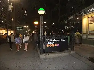 - ^ Rahhal, Emily; Rosoff, Henry (March 25, 2024). "Subway barriers installed at Bryant Park station". PIX11. Retrieved March 26, 2024.