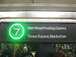 - ^ Donohue, Pete (April 1, 2008). "On No. 7 trains, red diamond means express, a green circle for local". New York Daily News. Archived from the original on March 22, 2015. Retrieved May 5, 2015.