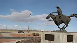 In July 1867 the 9th Cavalry was ordered to western and southwestern Texas, to maintain law and order between the Rio Grande and Concho Rivers along a 630-mile line with seven forts from Fort Clark to Fort Quitman near present-day El Paso (the forts ended up including Fort Quitman, Fort Davis, Fort Stockton, Fort Lancaster, Fort Clark, Fort Duncan, Fort McKavett, and Fort Concho).[4] Regimental Headquarters and Troops A, B, E and K, under Col. Hatch, were stationed at Fort Stockton; Troops C, D, F, G, H and I, under Lt. Col. Wesley Merritt were at Fort Davis. Troops L and M under 1st Lt. Hamilton had previously been sent to Brownsville. The 9th remained in Texas for eight years, nearly all of it in the field. While in Texas, the troops battled intermittently with Apaches, Kiowas, and Comanches, escorted mail, and rescued civilians from Native American captivity. On 26 December 1867, K Troop lost three troopers at Fort Lancaster in an encounter with an estimated force of 900 Native Americans and white outlaws.[4]
