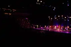 On August 4, a revised tour schedule was finally announced. From the original May schedule, 14 shows had now been cancelled due to poor sales, including dates in Kansas City, Houston, St. Louis, Knoxville, Des Moines, Glendale, Arizona, and Sunrise, Florida in addition to those previously mentioned.[7] Several other late summer/early fall dates had been pushed back into later in the fall, including ones in Nashville, Los Angeles, Denver, and Phoenix.[8] Compared to the original schedule, the total number of North American shows was still roughly the same, due to the addition of a large number of shows in Canada (where Taking the Long Way had proved extremely popular, going five-times-platinum); 15 of the 41 North American shows were now scheduled for north of the border, a strikingly high proportion for an American act. (Mariah Carey's concurrent The Adventures of Mimi Tour had also increased its Canadian dates, although not to this extent; her management said the Canadian market was hot and favorable exchange rates made playing there attractive.[9]) Dates were also announced for Australia, where Taking the Long Way had been number one on the country albums for the three months since its release. The rescheduling also supposedly helped make room for promotion of the September 2006 documentary film Dixie Chicks: Shut Up and Sing, which, when released, contained a few behind-the-scenes and on-stage scenes from the beginning of the tour. During interviews for that film, Maines said in reference to the tour, "We’ve basically been playing to about half the audience as on the last tour, but it's a different audience. They just look good ... In the past, I think we always thought, Oh, we have a purpose to entertain them and they were there to absorb that and soak it up and be entertaining. They bought their ticket. Now you feel like they feel they have a purpose, supporting free speech and supporting us."[10]