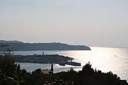 The Adriatic Sea contains more than 1,300 islands and islets, most along the Adriatic's eastern coast—especially in Croatia, with 1,246 counted.[22] The number includes islands, islets, and rocks of all sizes, including ones emerging at ebb tide only.[23] The Croatian islands include the largest—Cres and Krk, each covering about the same area of 405.78 square kilometres (156.67 sq mi)—and the tallest—Brač, whose peak reaches 780 metres (2,560 ft) above sea level. The islands of Cres and the adjacent Lošinj are separated only by a narrow navigable canal dug in the time of classical antiquity;[24] the original single island was known to the Greeks as Apsyrtides.[25] The Croatian islands include 47 permanently inhabited ones, the most populous among them being Krk, Korčula and Brač.[26] The islands along the Adriatic's western (Italian) coast are smaller and less numerous than those along the opposite coast; the best-known ones are the 117 islands on which the city of Venice is built.[27] The northern shore of the Greek island of Corfu also lies in the Adriatic Sea as defined by the IHO.[28] The IHO boundary places the Diapontia Islands (northwest of Corfu) in the Adriatic Sea.[10][29]