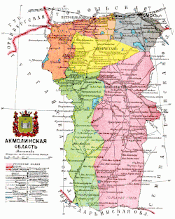 ![]() Map of Akmolinsk Oblast | |||||||||||