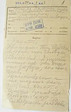 Protogerov was a Bulgarian Freemason and held a leading position (Grand Master) in the lodge where he was a member since the 1910s.[5][6] In the Balkan Wars, Protogerov was one of the organizers of the Macedonian-Adrianopolitan Volunteer Corps and Assistant Commander of this military unit. From 1912 to 1918 he was the president of the Executive Committee of the Macedonian charitable brotherhoods in Bulgaria.[6] During World War I, he commanded the Third Infantry Brigade of the 11th Macedonian Infantry Division. Protogerov captured the region of Štip, together with Todor Aleksandrov. In late October, he ordered the massacre of 120 wounded and ill Serbian prisoners of war from the Štip hospital, who were killed in a village near Štip by units of the 11th Division and komitadjis under the command of voyvoda Ivan Yanev Barlev. In early March, he became the chief of the Morava area. The Bulgarian Supreme Command chose him because he had experience in guerrilla warfare and was active in the pro-Bulgarian IMRO. He regarded the Serbs as the worst enemies. On 10 March, he gave the rebels the ultimatum to surrender within five days. Within fifteen days, he defeated the rebels. The army under his command and his IMRO units repressed civilians, destroyed many villages, killed thousands of people and committed mass rape.[7] Atrocities continued in the next months under his successors, Colonel Tasev (who replaced him as chief) and Lieutenant Colonel Durvingov (who was chosen by Protogerov).[8] In 1918, as a commander of Sofia's garrison, he suppressed the Radomir Rebellion, which was a revolt by Bulgarian soldiers.[1][9] Yugoslav authorities regarded him and Aleksandrov as war criminals.[10] After World War I, In 1919, IMRO was restored, with him, Todor Aleksandrov and Petar Chaulev being part of the Central Committee. However, Aleksandrov was recognized as the leader and many people called it "Aleksandrov's VMRO."[11] In the same year, on behalf of the Executive Committee of Macedonian Societies, he sent a letter to the Paris Peace Conference, requesting the incorporation of Macedonia into Bulgaria. However, Vardar Macedonia was ceded to the Kingdom of Serbs, Croats and Slovenes.[3] Both him and Aleksandrov were arrested by the Bulgarian Agrarian authorities after they came to power in August 1919,[12] who charged them with war crimes, but they managed to escape with the help of Bulgarian officers on 13 November 1919.[12][13] Afterward, they established a stronghold of the IMRO in the Petrich district, which they ran like an independent state. Taxes were also imposed on the locals and funds were given by the Italian authorities, who were supporting them against Yugoslavia. The Minister of Interior Aleksandar Dimitrov ordered the arrest of the IMRO leaders, but they went underground.[14] He signed an agreement in November 1920 with Albanian representative Hasan Bey Prishtina, stipulating the 'liberation of Macedonia in her ethnographic and geographical frontiers', while Debar was to be decided with a plebiscite.[12][15] In 1922, Protogerov projected the creation of an autonomous Macedonia, with Thessalonica as capital, as part of the Tsardom of Bulgaria.[16] In 1923, the IMRO under him and Aleksandrov assassinated Bulgaria's prime minister, Aleksandar Stamboliyski, after he signed the Treaty of Niš with the Kingdom of Serbs, Croats and Slovenes and undertook the obligation to suppress the military operations of the IMRO carried out from Bulgarian territory.