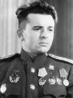 Aleksandr Terentyevich Karpov (Russian: Алекса́ндр Тере́нтьевич Ка́рпов; 17 October [O.S. 4 October] 1917 – 20 October 1944) was a squadron commander and flying ace in the 27th Vyborg Guards Fighter Aviation Regiment during the Second World War credited 27 individual and nine shared aerial victories, the most of any pilot in Soviet Air Defense Forces.[1][2][3]