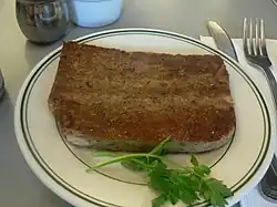 Pork scraps and corn meal were cooked into a thick porridge and molded in loaf pans. Once solidified, the mixture would be cut and fried. During the fall months, pork might be replaced with fried apples or potatoes. It was served with buttered biscuits, jam, jelly, milk gravy or sorghum syrup. Fruit butter might be made from apples, plums or peaches to accompany the meal.[60]