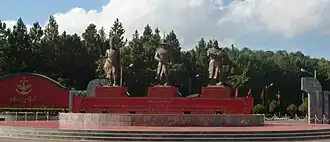 Statue of Anawrahta (far left) along with the statues of Bayinnaung and Alaungpaya in front of the DSA.