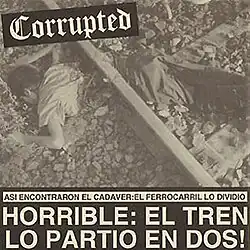 Anciano (Spanish for old man) is an EP by the Japanese doom metal band Corrupted. Because the Spanish phrase "Horrible: El Tren Lo Partió En Dos!" ("Horrible: The Train Cut Him In Two") appears on the cover, the phrase is often mistaken to be the title of the EP.[1] The album was pressed four times on 7-inch vinyl; the first two using a black and white cover, the third  blue, and the fourth  brown.[2] "The Post War Dream" is a cover of the Pink Floyd song that opens their 1983 album The Final Cut.