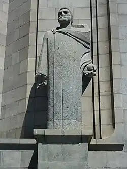 Grigor Narekatsi is considered the greatest spiritual poet in the history of Armenia.[116] The British Encyclopedia regarded him as the main literary figure of 10th-century Armenia.[117] Narekatsi was born in the mid-10th century into the family of a theologian, Bishop Khosrov Andzevatsi, and spent his entire life in Narekavank, located in the southwestern part of Armenia, where he received education and upbringing from one of Armenia's most progressive figures of the time, Anania Narekatsi. He is best known as the author of the poem "Book of Lamentations," consisting of ninety-five chapters and 10,000 lines, written in 1001–1002. The entire poem represents the author's internal monologue.[118] Each chapter is dedicated to the theme of detachment and unity with God. The poet wrote about his sufferings from separation from God, arising from sinfulness, and the longing for union with the Almighty.[119] At times, the somber mood and dictation contrast with bright, festive tones and hues. Narekatsi indirectly touched upon themes of both spiritual and certain aspects of human and natural beauty.[120] Under his influence, Armenian poetry gave rise to and developed powerful lyrics about the "vanity of the world".[121] The motif of repentance and love for God resembles Augustine's "Confessions".[8] At the end of the poem, he mentions the attack by the "invincible and great Roman Emperor Basil" on northwestern Armenia in 1000.[119]