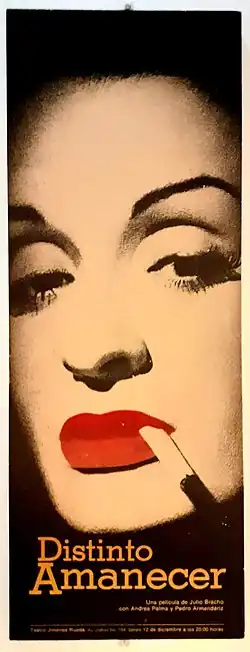 Another Dawn (Spanish: Distinto amanecer) is a 1943 Mexican thriller film directed and co-written by Julio Bracho and starring Andrea Palma, Pedro Armendáriz and Alberto Galán.[1] The film's sets were designed by the art director Jorge Fernandez.