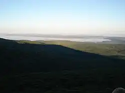 A segment of 20.4 miles (32.8 km) winds from Havana north through the Ozark National Forest to an area south of Paris.[7] The route passes by Mount Magazine, which at 2,753 feet (839 m) is Arkansas's highest point.[8] Recreation areas include Cove Lake and Mt. Magazine Recreation Areas, with views of Blue Mountain Lake available from an overlook.[9] Many current camp sites are former home sites that were bought by the government during the depression.