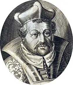 Balthasar revoked his abdication and sent complaints to Emperor Maximilian II and Pope Gregory XIII to be reinstated. The Pope threatened Echter von Mespelbrunn with excommunication if he refused to relinquish his claim to Fulda, but the latter insisted on the matter being settled by lawsuit, which would last more than a quarter century. During his years of banishment, von Dernbach directed his care and attention to the seminary at Fulda established by Pope Gregory XIII for students of noble birth. Balthasar effected the creation of sixty additional free places for the needy sons of burghers.[6] In 1602, the Aulic Council reinstated Balthasar and sentenced the chapter, the knights and the cities to pay a fine and the expenses of the proceedings. Upon his return, 26 years later, Balthasar continued his policy of counter-reformation and achieved a complete restoration of Catholicism in the city and the principality.[2][3][4][5]