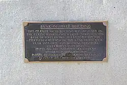 3. ^ "Bank of Italy Building Historical Marker". www.hmdb.org.