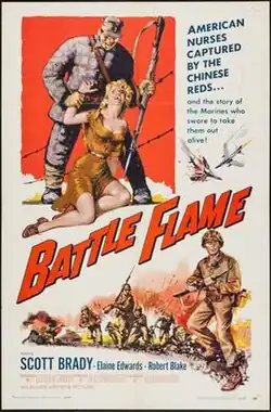 Battle Flame is a 1959 American war film directed by R. G. Springsteen and written by Elwood Ullman. The film stars Scott Brady, Elaine Edwards, Robert Blake, Wayne Heffley, Gordon Jones and Ken Miller. The film was released on July 26, 1959, by Allied Artists Pictures.[1][2][3]