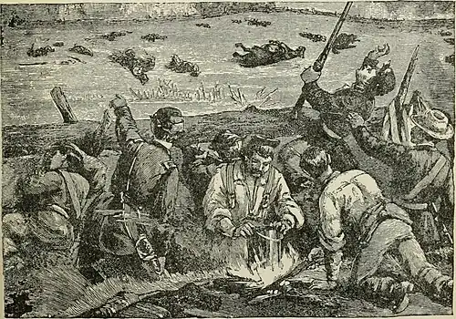 ![]() Union troops behind log breastworks near Bethesda Church | |||||||