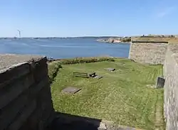 Two of the Gothenburg Squadron's frigates, the Fredericus and the Halmstad had been leased to the Gathenhielm privateers. The Halmstad was equipped, but undermanned. These two frigates as well as an additional two from Nya Varvet, formed a blockade in Göta älv between Nya Varvet and Rya Nabbe. Strömstierna supplied the vessels with barricades so as to prevent the Danes from boarding them.[19] Additionally, Nya Älvsborg fortress had been reinforced with a crew of 400 soldiers and 90 cannons. The two cannon batteries Lilla Billingen and Rya Nabbe, with 12 heavy cannons each had been manned with infantry from the Saxon Infantry Regiment led by Colonel G.D Zengerlein. In addition, the Småland Regiment as well as an elite unit, the Grenadier Battalion led by Johan Clausen, which composed of handpicked grenadiers from different units, were assigned to man the forts. In total, there were around 1000 Swedish soldiers and 200 cannons at the rivermouth of Göta älv.[20]