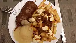 A berenhap (Bear's bite in English) or spoetnik (Sputnik in English) is a deep-fried fast food snack from the Netherlands.[1] It consists of a sliced meatball and fried onion rings on a wooden skewer, smothered in peanut sauce. The snack is also served with "Zigeunersaus" (literally translated: Gypsy-sauce), or a cold curry sauce should one not like peanut sauce. Sometimes, pineapple or bell pepper are used as well as onion rings.