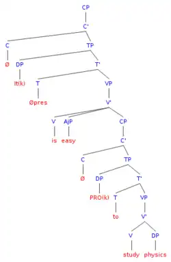 10. ^ a b c d e f g h i j Hornstein, Norbert (1999). "Movement and Control". Linguistic Inquiry. 1. 30 (1): 69–96. doi:10.1162/002438999553968. JSTOR 4179050. S2CID 593044.