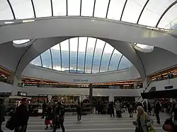 New Street station is the main railway station in the city centre with local and national railway connections. The station was first built in 1854 and rebuilt in 1967. The redevelopment of the station in a project named Gateway Plus was finished in 2016. The project cost £600m and included a new John Lewis department store and many other shops. The project took five years to build and is one of the most expensive and controversial regenerations in all of Europe. Moor Street, Snow Hill, Bordersley and Jewellery station are also located within the city centre. Ten suburban and Inter-City heavy rail routes service the city centre.[1] The first railway station to be built in the city centre was Curzon Street railway station, which acted as the terminus for both the London and Birmingham Railway and the Grand Junction Railway, with lines connecting Birmingham to London and to Manchester and Liverpool respectively. The building, designed by Philip Hardwick, was built in 1838 and is Grade I listed.