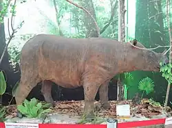 Today, the Bornean rhinoceros, like the Sumatran rhino, lives in hot, humid closed canopy rainforest. However, being a species which existed before the end of the Pleistocene, it is likely that this was not the habitat in which they evolved.[6]