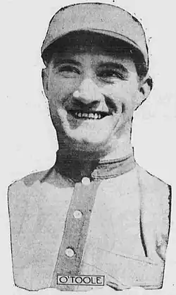 The 1908 Brockton Tigers were again managed by Stephen Flanagan as the team finished in fourth place in the eight-team New England League final standings.[95][96] The Tigers had a 66–56 final record, finishing the season 13.0 games behind the New England League champion Worcester Busters and manager Jesse Burkett in the final standings of the Class B level league, which held no playoffs.[97][22][98] Tom Catterson of Brockton won the 1908 New England League, batting title, hitting .327. Catterson also led the league with 140 total hits. Tigers pitcher Marty O'Toole won 31 games to lead the league, along with 266 strikeouts, best in the New England League.[22] The next league player finishing behind O'Toole in wins was Frank Barberich of Worcester, who had 24 wins.[99] After the New England League season ended, O'Toole was signed by the Cincinnati Reds and joined the Reds for the end of the 1908 season. He appeared in three games for Cincinnati, with a 1–0 record and a 2.40 ERA.[100]