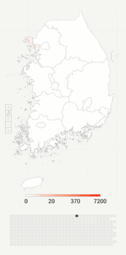 ![]() Coronavirus pandemic in South Korea over time (since 20 January 2020). Day not included in map Day included in map Last day included in map | |