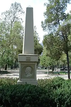 Obelisk dedicated to Friar Camilo Henríquez, Manuel de Salas, Manuel José Gandarillas y José Miguel Infante in the Parque Forestal in the city of Santiago de Chile