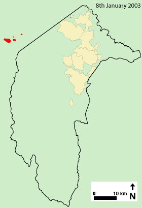 On 13 January, a Bell Jet Ranger helicopter that had been waterbombing the fires in the forests west of Canberra crashed into Bendora Dam with one person, pilot Duncan Patrick, injured. The pilot was reloading water buckets from the dam at the time of the crash. ACT Chief Minister Jon Stanhope and ACT Chief Fire Control Officer Peter Lucas-Smith were reviewing the fires nearby during a routine bushfire surveillance flight in the Snowy Hydro SouthCare helicopter. The unconscious pilot had been pulled from the sinking wreckage by a SouthCare rescue helicopter medical crewman Euan McKenzie, but due to the weight of his clothes and lack of life vest, was unable to be dragged from the water.[2][3] The pilot of the Southcare chopper cautiously positioned his aircraft to allow Stanhope, Lucas-Smith and a paramedic on board to dive into the dam and bring the injured pilot about 60 metres to shore for resuscitation by Lucas-Smith and McKenzie.[4][5][6][7] The pilot had head injuries and underwent emergency surgery at Canberra Hospital.[8]