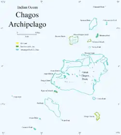 | Major islands | Diego Garcia, Peros Banhos, Salomon Islands, Egmont Islands |