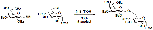 - ^ Veeneman, G.H.; van Leeuwen, S.H.; van Boom, J.H. (1990). "Iodonium ion promoted reactions at the anomeric centre. II an efficient thioglycoside mediated approach toward the formation of 1,2-trans linked glycosides and glycosidic esters". Tetrahedron Lett. 31 (9): 1331–4. doi:10.1016/S0040-4039(00)88799-7.